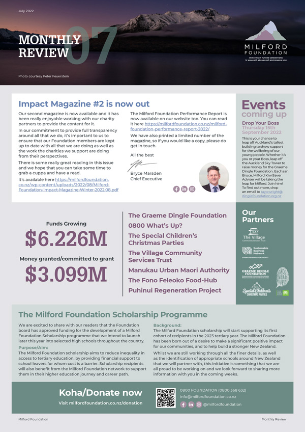 to download your copy of the Milford Foundation Monthly Report